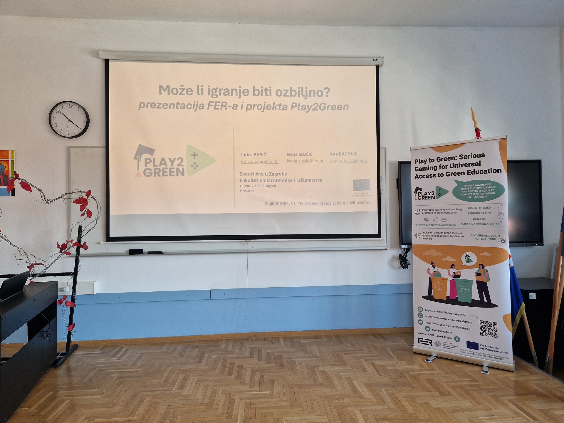 U utorak, 22. travnja 2025. godine, Sveučilište u Zagrebu Fakultet elektrotehnike i računarstva (FER) posjetio je X. gimnaziju s ciljem promocije STEAM područja, predstavljanja fakulteta te prikaza rezultata Erasmus+ projekta Play2Green, čiji je FER glavni koordinator.
