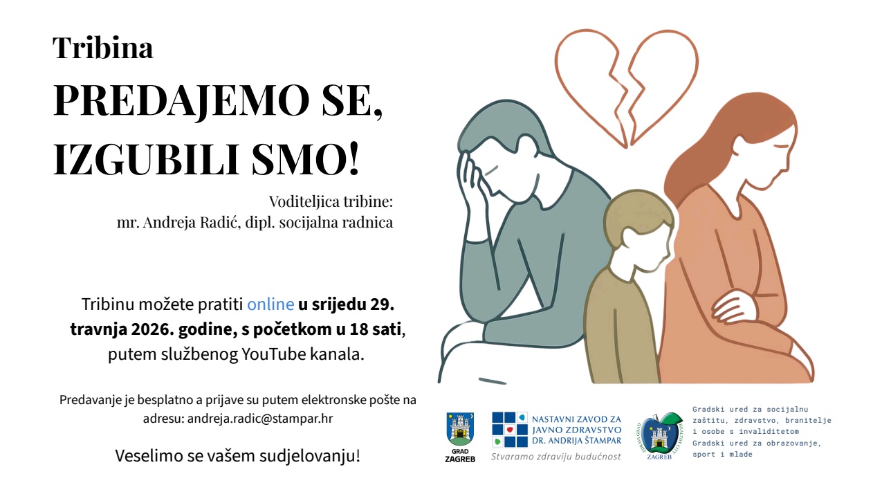 Praćenje tribine moguće je putem YouTube-kanala, uz prethodnu prijavu e-poštom na adresu: andreja.radic@stampar.hr